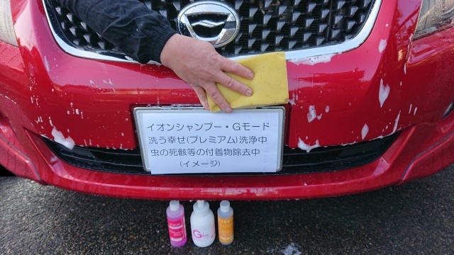 夏場の夜間と高速道路等で車を使用すると虫の死骸の汚れが付着しますが付着したとしてもイオンシャンプー・Gモードエッセンスで洗車を行うと簡単に汚れが落ちます。