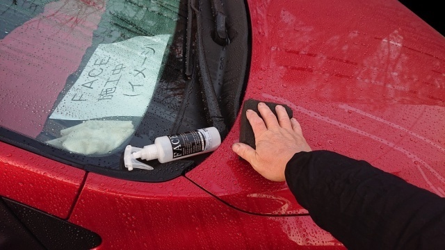 FACE施工後の水滴の拭き取りには、赤の極細繊維クロスを使用致しました。所要時間は、前途の4Cダイヤモンドコーティング施工まで行ってからこの表記のFACE施工のみで、洗車時間の小計は、全て、カローラ等クラスで、鉄粉除去作業の感想掲載ページの洗車開始から4Cダイヤモンドコーティング施工の感想掲載ページの4Cダイヤモンドコーティング施工後までの洗車時間は約20分から約2時間30分までの途中中断の時間を除いてからの小計は約5時間50分位かかりました。この表記のFACE施工を行うと、約6時間20分位かかりました。今回のFACE施工と後日Gモードessence(エッセンス)手洗い洗車を行います。