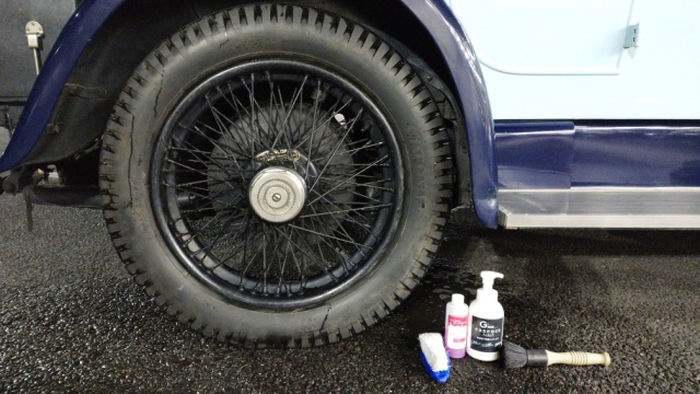 エンジンルーム内は、を、販売終了品のドットリムーバーで汚れ落としを行い、キャブレター(気化器)は、エンジンの吸気負圧を利用して、燃料(ガソリン)を霧状にして、空気と混合し、エンジンへ供給する機械式の燃料供給装置です。現在は、電子制御のインジェクションになります。この車の、キャブレターの金属部分、磨いたら、艶が出て、美しく光る様に、綺麗になりました。エンジンルーム内の黒塗装部分を、コンパウンドワイドで、磨いたら、艶が出て、綺麗になりました。ワイヤーホイールの洗浄をGモードエッセンスと、市販品のホイール洗浄用ブラシを使用して、洗浄作業を行ったらブレーキダスト等の汚れが落ちました。タイヤは、イオンシャンプーを使用して洗浄作業を行いました。