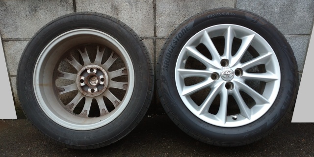 この表記の洗車作業時間は、今まで、表記の洗車作業のみで、各工程の途中中断時間を含む、洗車開始の段取りと、後片付け(各種クロス・スポンジの洗濯を含む他等)は含みません。洗車作業および洗車を行う車の洗車作業に慣れていて、塗装面が綺麗な状態で、全てカローラ等クラス・ボディカラーは、画像写真のレッドマイカメタリック・画像写真のアルミホイール装着の、最短の参考洗車作業時間です。
